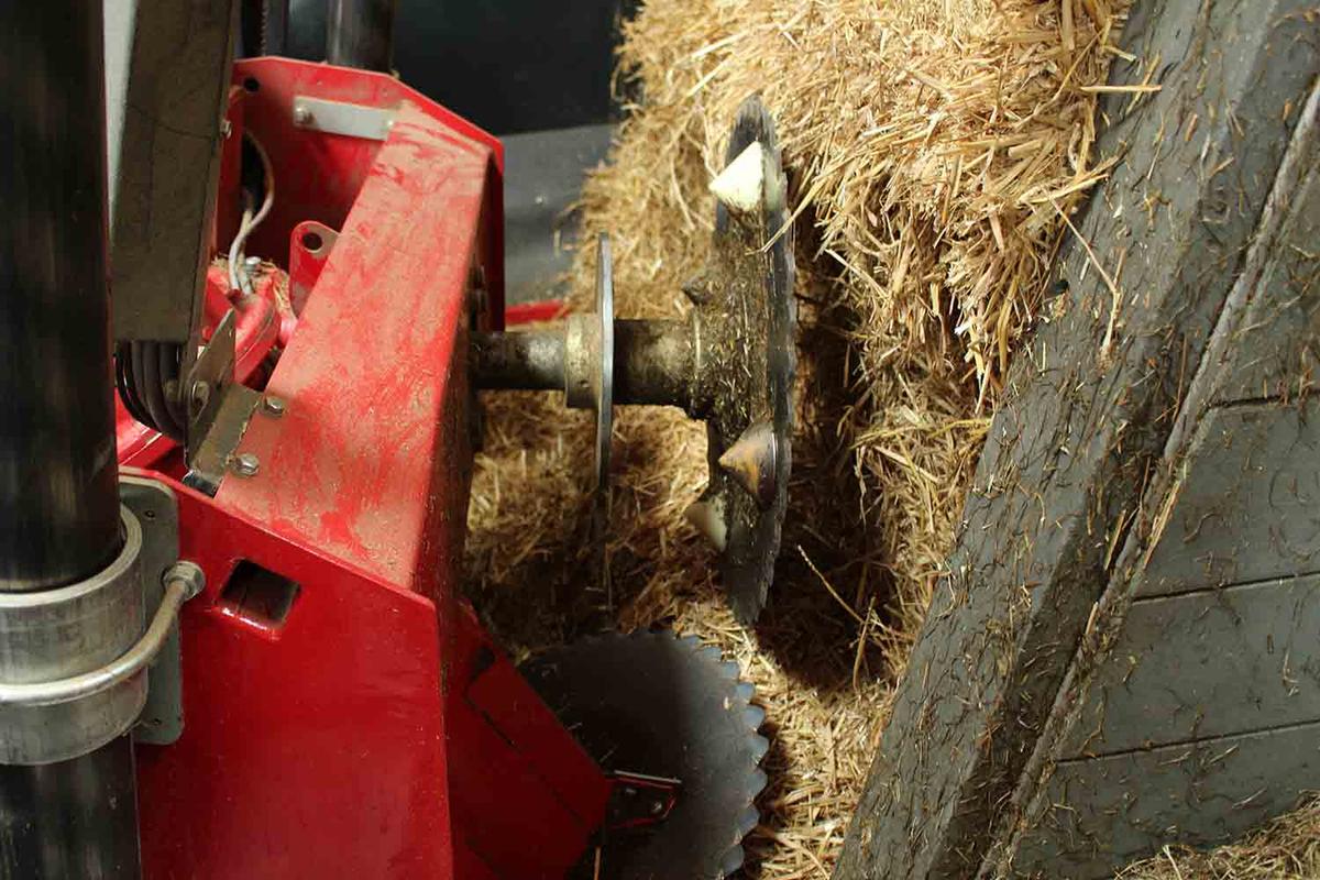 In the case of manual kitchen loading, a series of bins or spaces dedicated to each ingredient is installed. Specifically, the bins can be filled with hayed product bales or silage product blocks; of course, the bins must be covered to ensure the integrity of the product, which could otherwise be damaged (e.g., by weather). The bins are adjacent so that picking by cutting and subsequent transport to the wagon of all ingredients is easier. The kitchen requires dedicated space in the barn, with a careful preliminary assessment of available areas for each production context. Conversely, if fully automated technologies are used, there is no need to provide a space for the kitchen set-up.
