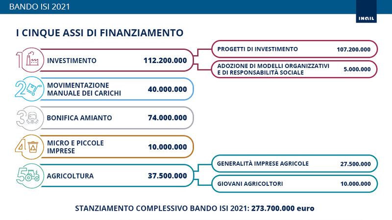 Countdown for the start of the new ISI call. From February 26, Inail, the institution managing the allocation of funds, will publish on its website the terms and the deadlines for submitting applications, that can be forwarded only electronically. Aimed at facilitating investments by companies in systems and technology for safety at work, the ISI call provides for a section specifically dedicated to SMEs and agricultural micro-enterprises, one of the sectors in which the incidence of accidents at work is higher. Axis 5, the one addressed to primary care operators, provides for a total budget of 37.5 million euros, 10 million of which intended exclusively for young agricultural entrepreneurs. The subsidies, paid as capital contributions, are calculated on eligible expenses net of VAT and are comprised between a minimum of 1,000 and a maximum of 60,000 euros. In the case of projects presented by young agricultural entrepreneurs, the funds of the ISI call can cover up to 50% of eligible expenses, while for all other applicants this percentage drops to 40%.