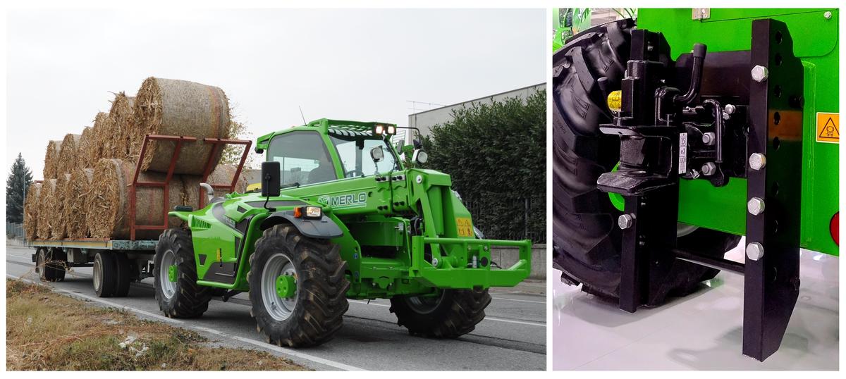 Merlo of S. Defendente di Cervasca (CN), which has long been at the forefront of offering well-established ranges of telehandlers specifically dedicated to agricultural applications, such as the Turbofarmer and Multifarmer, offers various solutions for towing towed equipment for these models, with CUNA hooks authorized for even heavy-duty towing.