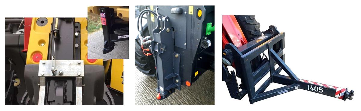 As far as “EU” tow hooks are concerned, the products made for telescopic handlers are kits that often come from the United Kingdom, which include hook and ball types. Unimac, a UK company based in Northamptonshire, offers a 3,000 kg capacity ball hitch suitable for farm handling operations. The hook is mounted at the end of a sturdy metal profile frame which attaches to the lifting arm, obviously set to its lowest position. In line with this, but with an important technical variation, the Irish company Dromone produces a hook hitch, to be fixed with its own frame to the rear of the vehicle, the height of which can be adjusted hydraulically and directly from the driving seat, with a wide range. A similar solution is also offered by the English distributor Cherry Products.