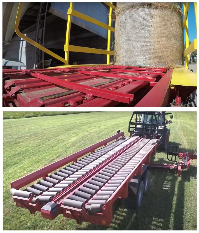 Non solo, sui rimorchi le balle possono essere stoccate a loro volta in posizione verticale, ovvero con le facce piatte a contatto con il pianale, oppure orizzontali, cioè affiancate e accumulate una sull’altra sulla loro circonferenza esterna. Tutto ciò ha dato origine a diverse soluzioni cinematiche di movimentazione, di norma però tutte asservite idraulicamente, date le entità dei carichi da gestire.
