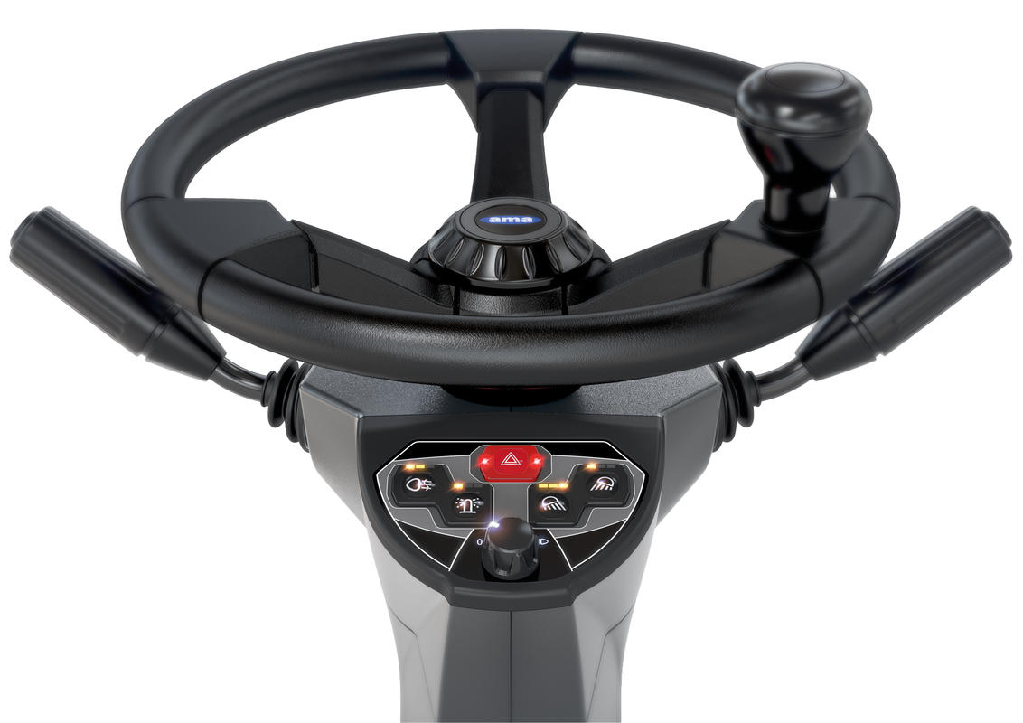 AMA propone l’accento su tre innovazioni di prodotto che farà debuttare ad Agritechnica. In primis la colonnetta sterzo Dynamica (nata dalla divisione AMA Imel Pertex) che combina elettronica intelligente, meccanica avanzata e design modulare. Progettata per le esigenze dei costruttori e ingegnerizzata per applicazioni versatili – dalle macchine per la raccolta a quelle per il movimento terra – Dynamica, secondo il gruppo reggiano, è la dimostrazione concreta della trasformazione delle idee degli OEM in soluzioni complete, flessibili e pronte per il mercato. La colonnetta sterzo è caratterizzata da coperture in plastica a iniezione, pannello CAN Bus integrato con cinque pulsanti uno dedicato alla funzione di pericolo e quattro configurabili per simbolo, LED e software e connessione CAN Bus plug & play, interruttori a pedale su lato sinistro e/o destro, cablaggio standard o personalizzato. È disponibile, inoltre, un sensore di luce solare opzionale per l’attivazione automatica dei fari, della regolazione doppia dell’inclinazione e della regolazione telescopica.