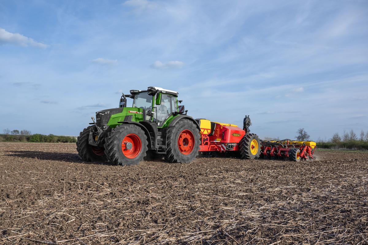 Dopo il lancio della serie 300 nel segmento dei ‘piccoli’ trattori (si veda il numero scorso di Mondo Macchina) Fendt rinnova le alte potenze mettendo mano a una delle macchine iconiche del marchio di Marktoberdorf: la serie 800 Vario. Con tre modelli (Fendt 826, 829 e Fendt 832 Vario), la quinta generazione della serie 800 Vario copre la gamma di potenza da 260 a 320 Cv con le varianti di equipaggiamento Power+, Profi e Profi+ e con i 23 Cv di potenza extra del Fendt DynamicPerformance (DP) disponibili su tutti i modelli. L’826 Vario può così arrivare a 283 Cv, l’829 Vario a 313 Cv e il top di gamma, l’832 Vario, a 343 Cv. Il motore è il sei cilindri CORE80 con cilindrata da 8 litri di Agco Power, sviluppato esclusivamente per Fendt. Il post-trattamento dei gas di scarico avviene tramite un catalizzatore di ossidazione diesel (Doc), un filtro antiparticolato diesel (Dpf) e una riduzione catalitica selettiva (Scr) senza ricircolo dei gas di scarico (a norma Stage V). Il CORE80 è già omologato per HVO100 e monta punterie idrauliche che non necessitano di manutenzione. La prima manutenzione dell'olio motore è prevista a 500 ore, senza intervallo iniziale di 50 ore. Grazie alle ottimizzazioni tecniche, l'intervallo di sostituzione dell'olio per cambio aumenta da 2.000 a 4.000 ore di funzionamento o 4 anni. La trasmissione, uno dei punti di forza del trattore, è la monostadio Fendt VarioDrive con trazione integrale permanente e indipendente, introdotta per la prima volta nel 2014 con il Fendt 1000 Vario ed ora disponibile per la prima volta nella serie Fendt 800 Vario. Grazie a questa soluzione tecnologica, l’operatore non deve più cambiare gamma manualmente quando passa dal campo alla strada. Il VarioDrive aziona gli assali anteriori e posteriori indipendentemente l’uno dall’altro, a seconda delle necessità e distribuisce la potenza in modo dinamico. Un ulteriore vantaggio è il cosiddetto effetto "pull-in-turn”, grazie al quale l’assale frontale, azionato in modo indipendente, traina la macchina in curva attivamente ma senza tensioni, garantendo un raggio di sterzata ridotto del 10%.