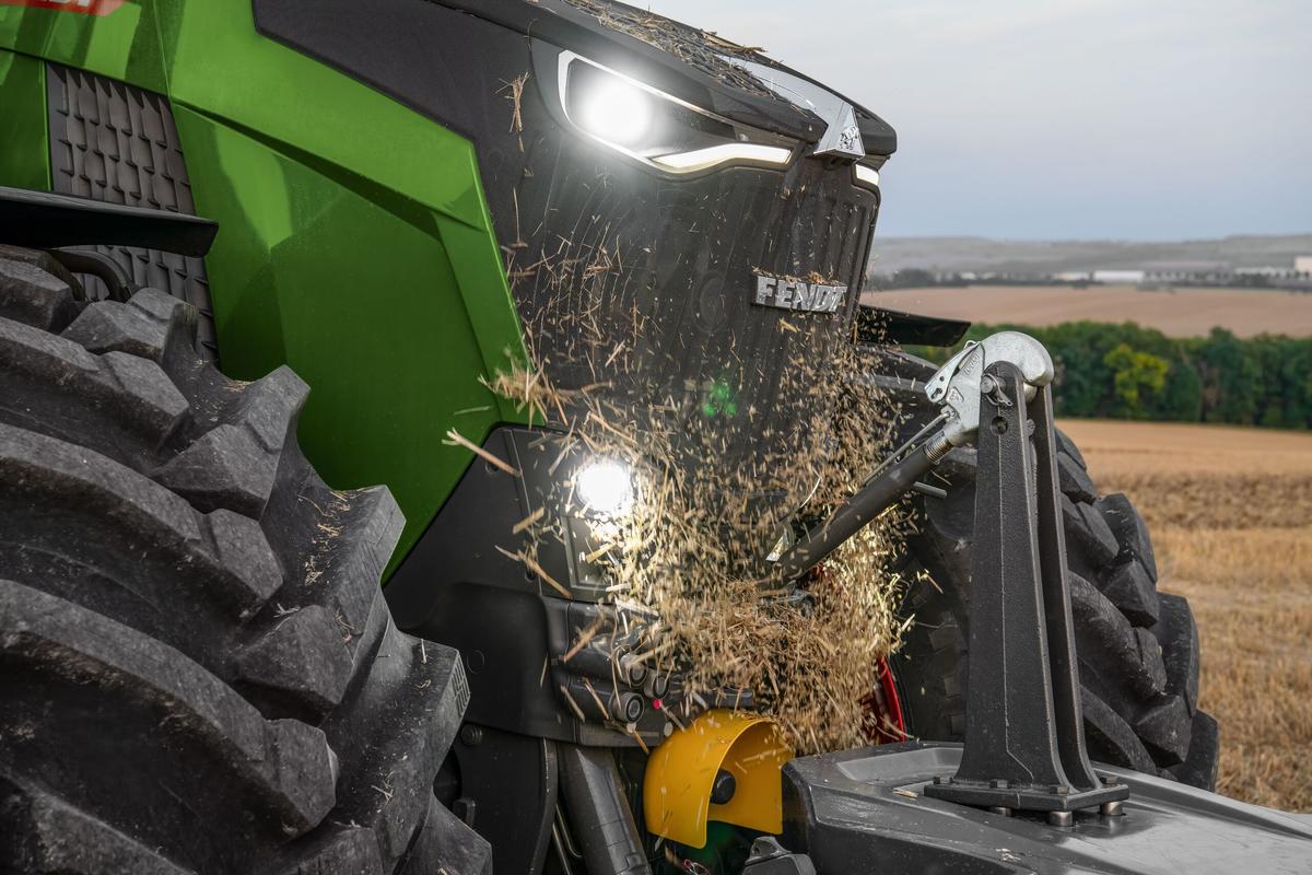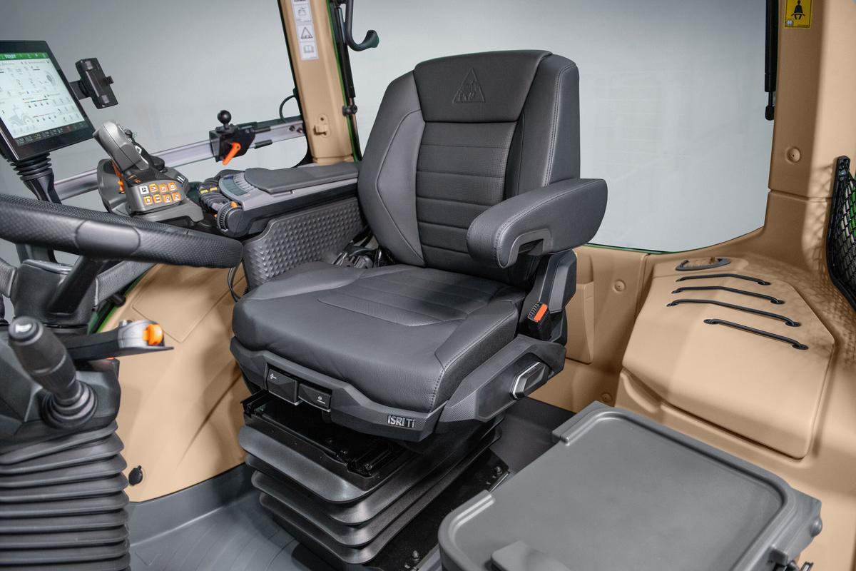 Sulla serie 800 Vario Fendt presenta per la prima volta la nuova cabina con fari a LED Vision o UltraVision. In entrambe le varianti è possibile installare otto o dodici fari nel tetto della cabina. Nella variante UltraVision il trattore illumina la superficie con 4.400 lumen per faro e i fari sono dimmerabili su cinque livelli. L’opzione di equipaggiamento Vision consente 1.000 lumen per faro. Tutti i fari, incluso il lampeggiante, sono installati in modo permanente nel tetto della cabina. Cabina che è dotata della postazione di lavoro FendtOne con bracciolo e fino a tre superfici di visualizzazione. Il parabrezza in vetro di sicurezza stratificato è riscaldabile e, grazie al suo speciale processo di montaggio, resiste meglio all’eventuale contatto con corpi estranei. Se il Fendt 800 Vario viene utilizzato con un attrezzo nella parte posteriore, come un cippatore o una trincia forestale, tutti i comandi possono essere ruotati di 180 gradi tramite il comando di guida retroversa opzionale di fabbrica. Oltre alla presa di forza a 4 velocità, è disponibile una presa di forza separata con 540/900/1.000 giri/min. Il nuovo sedile in pelle Titanium regola elettricamente altezza e posizione del sedile e angolazione dello schienale tramite una leva posta sul lato del sedile. Le funzioni di comfort consistono in ventilazione e riscaldamento multistadio del sedile, supporto lombare a quattro livelli, supporti laterali regolabili e funzione massaggio con tre diversi programmi. Il Fendt 800 Vario dispone di sei distributori elettronici nella parte posteriore nonché due in quella anteriore (6+2). Nella linea di equipaggiamento Power+ sono disponibili al massimo quattro distributori nella parte posteriore e una nella parte anteriore (4+1) oppure cinque distributori nella parte posteriore (5+0). Si possono scegliere tre opzioni di pompe idrauliche: 165 l/min, 220 l/min e per le utenze con esigenze variabili di volume olio e pressione è disponibile un sistema a doppia pompa con portata massima combinata di 385 l/min (165 + 220 l/min). Nella parte posteriore, i giunti FFC a tenuta piatta opzionali per le unità di controllo e il collegamento Power Beyond impediscono l’ingresso di agenti contaminanti all’interno del sistema nonché l’originarsi perdite di olio.