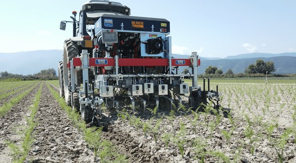 Oliver Agro si presenta ad Hannover con il modello Optyma, una macchina in grado di unire automazione, tecnologia e intelligenza artificiale per garantire il massimo controllo delle infestanti già a partire dal settimo giorno successivo al trapianto. Punto di forza è il sistema idraulico proporzionale con autolivellamento integrato. Grazie a potenziometri lineari e sensori angolari, Optyma assicura infatti una profondità di lavoro sempre costante, riducendo lo stress per la coltura e massimizzando i risultati di lavorazione del terreno in prossimità della pianta. L’operatività della macchina è definita da una serie di azioni innovative: movimento attivo di sarchiatura, che rompe la crosta del terreno a 2-3 cm e ossigena l’area radicale, favorendo piante più sane e vigorose; sistema di riconoscimento basato sull’intelligenza artificiale, in grado di distinguere con precisione le colture dalle infestanti, anche in condizioni di luce variabili o in presenza di terreni poco preparati; identificazione della zona radicale invece che delle foglie, per un riconoscimento più stabile e accurato, indipendente dallo sviluppo vegetativo. Oltre a Optyma, Oliver Agro fa esordire in Germania la nuova sarchiatrice di precisione Rotostar 2025 che ha nel telaio traslatore idraulico il suo punto di forza. Grazie a questo sistema, gli utensili restano sempre allineati alla fila, assicurando lavoro costante e preciso anche nelle condizioni più difficili. Gli elementi di lavoro, montati su parallelogramma per seguire al meglio il profilo del terreno, rappresentano per Oliver Agro la vera innovazione. Si tratta di rotori Rotosark in acciaio – sono contrapposti e a soli 2 cm dalla pianta per una lavorazione direttamente sulla fila – abbinati a rotori Rotostar con denti in gomma, anch’essi contrapposti, che completano la lavorazione vicino alla pianta, e di zappe posteriori che rifiniscono l’intervento, lasciando il terreno pulito. L’ultima innovazione apportata è l’introduzione di un cilindro idraulico multifunzione: in grado di sollevare gli elementi durante il trasporto su strada e indispensabile per regolare la pressione sui rotori.
