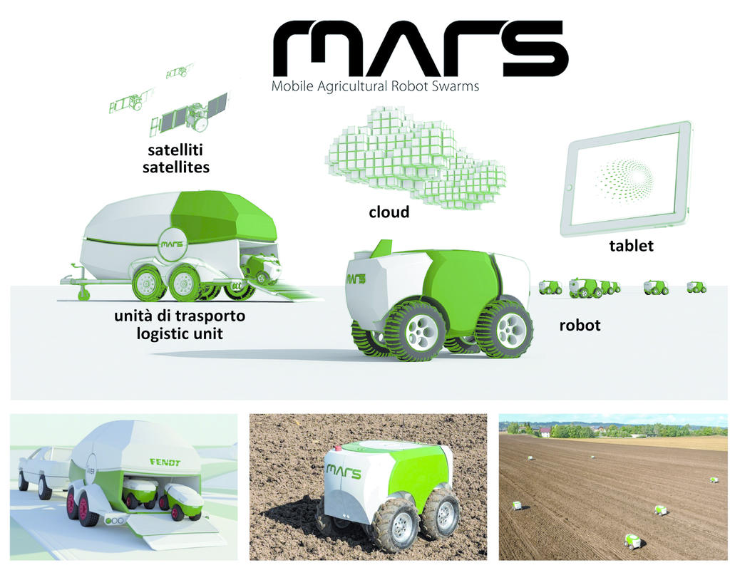 Un approccio ancora più futurista (e probabilmente futuribile) è rappresentato dal MARS (Mobile Agricultural Robot Swarms) di Fendt, anch’esso premiato con la medaglia d’argento all’edizione di Agritechnica 2017. Sviluppato inizialmente grazie ad un finanziamento UE dalla Ulm University, Fendt ha implementato nel progetto XAVER una piccola macchina robotizzata per la semina di precisione del mais, pensata per lavorare 24 ore al giorno in flotta, ovvero in collaborazione con numerose altre unità identiche, grazie all’ausilio di soluzioni basate su un cloud con accesso permanente ai dati.