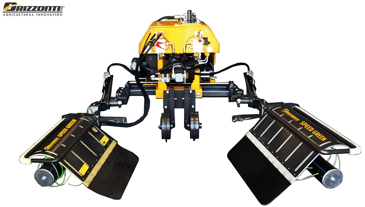 La Orizzonti di Imola (Bologna) ha in catalogo il Biogreen, un telaio portattrezzi doppio indipendente, che richiede un flusso di 70 l/min per l’impianto idraulico che lo aziona. Sui suoi bracci è possibile montare diversi attrezzi indicati per il vigneto, come dischiere rincalzatrici, dischi interfilari, spollonatrici e andanatrici. La larghezza di lavorazione è compresa tra 2,2 e 3 m, valore che nella versione “Compact” si riduce a 2 m. Sempre Orizzonti offre il telaio frontale doppio Sirio 2, con cui è possibile effettuare l’andanatura dei residui di potatura ma anche, in alternativa, il diserbo chimico localizzato con cupola di protezione. Richiede almeno 30 l/min di portata d’olio, lavorando con larghezze interfilare variabili tra 2,2 e 3,6 m. A richiesta è disponibile l’azionamento elettroidraulico con joystick.