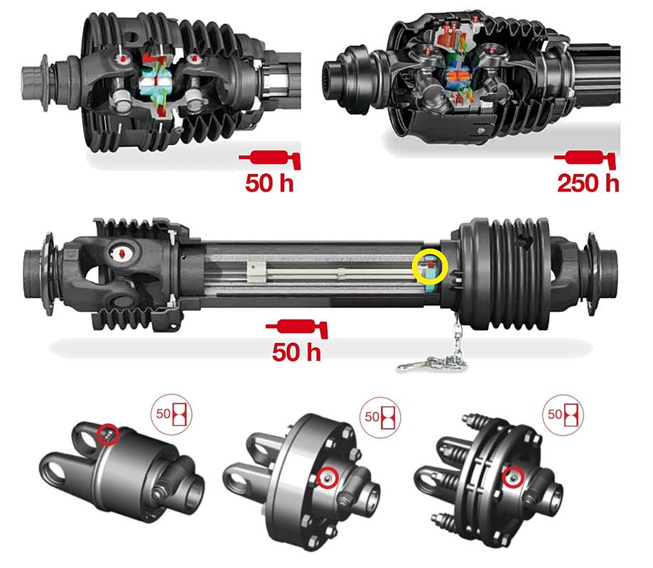 L’albero cardanico è un dispositivo meccanico, con diverse parti soggette ad attrito, che in questo caso deve essere logicamente minimizzato, per la massima efficienza di trasmissione della potenza. Pertanto, la lubrificazione effettuata con grasso riveste un’importanza fondamentale. Purtroppo, l’ingrassaggio delle parti interessate non è permanente, ma fino a qualche tempo fa era necessario intervenire in più punti del dispositivo e periodicamente con intervalli molto brevi, anche di sole 8 ore di lavoro. Tale operazione di manutenzione era di conseguenza spesso trascurata, se non del tutto ignorata, con diversi negativi risvolti, facilmente immaginabili.