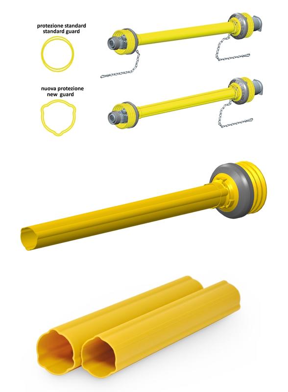 Un’importante evoluzione nella semplificazione della protezione è stata presentata di recente da Walterscheid, che ora commercializza il modello ST, i cui due semi-tubi hanno sezione sagomata come i tubi dell’albero cardanico. In tal modo, non si può più verificare la rotazione relativa tra i due elementi, così da poter fare a meno di una delle due catenelle di ritenzione. Addirittura, nella versione con cuffia integrale sul lato attrezzatura le catenelle possono essere assenti. La progettazione dei nuovi tubi ha tenuto attentamente conto della compatibilità con le precedenti serie già in commercio, in modo da rendere possibile un’immediata e agevole sostituzione, a tutto vantaggio del mantenimento di un elevato livello di sicurezza anche per alberi cardanici già in uso e bisognosi di una nuova protezione. Anche Bondioli e Pavesi ha affrontato il problema, e per limitare la possibilità che un aggancio non corretto della catenella ad un punto fisso del trattore possa danneggiare la protezione, ha introdotto la “Single Chain”, ovvero una particolare conformazione dei tubi telescopici della protezione che analogamente rende superflua l’installazione di una delle due catenelle di ritenzione. Nel dettaglio, il tubo interno è scanalato e vincolato in senso radiale a quello esterno mediante una fascia, posizionata a circa 100 mm dall'estremità dell’elemento esterno (per consentire un eventuale accorciamento dell'albero).