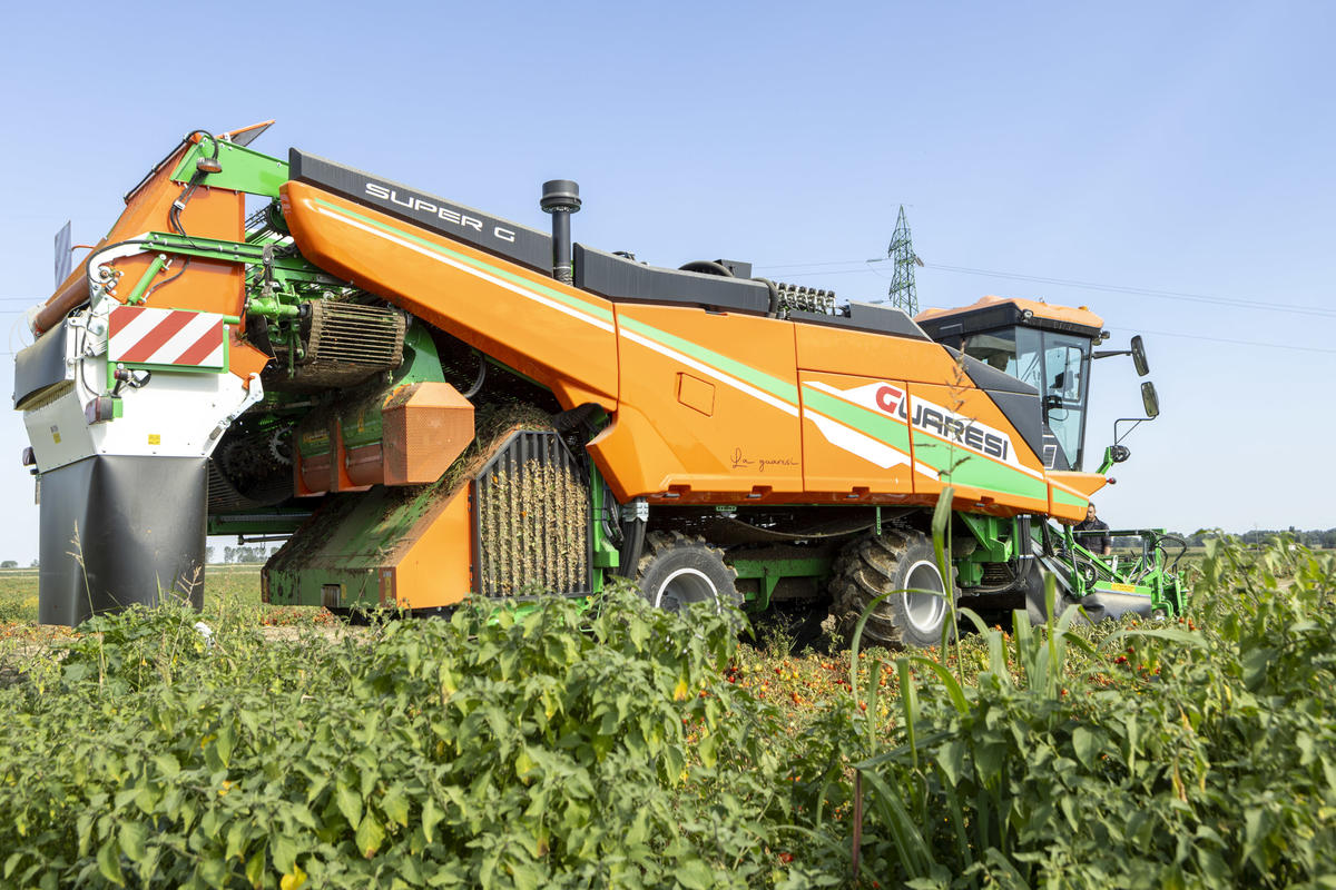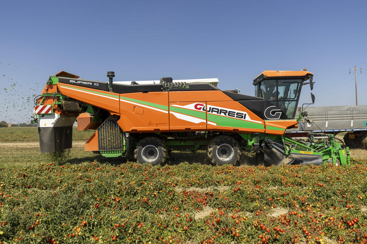 È il modello Super G “La Guaresi” della Guaresi macchine agricole, il prodotto di punta per la raccolta del pomodoro del marchio ferrarese, che dal 2022 fa parte gruppo FYELD, oggi insieme a GRIM (irroratrici semoventi), HORTECH (macchine da raccolta e trapianto delle orticole), K.U.L.T. (macchine per la rimozione meccanica delle infestanti), TOSELLI (irroratrici trainate per orticole) e AGRICOLA ITALIANA (leader mondiale nelle seminatrici pneumatiche da ortaggi).