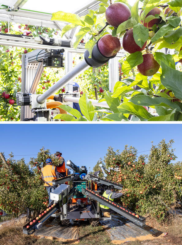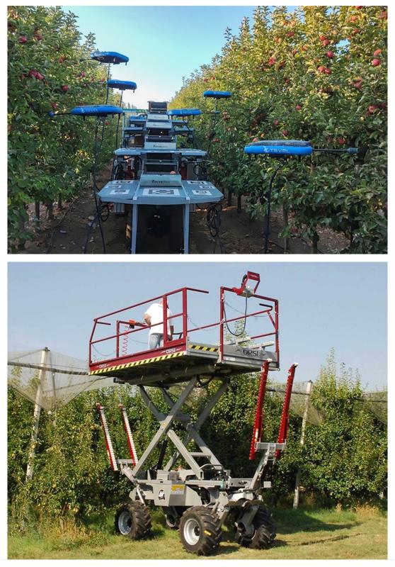 Raccolta robotizzata nel meleto. La raccolta robotizzata delle mele rappresenta uno dei campi più avanzati della ricerca applicata in frutticoltura. Il cuore tecnologico di questi sistemi è costituito dai sensori di visione artificiale, che consentono di individuare i frutti e valutarne lo stadio di maturazione. Le videocamere 2D e 3D, spesso integrate con sensori multispettrali, devono garantire un riconoscimento affidabile anche in presenza di frutti parzialmente coperti da foglie e rami e/o in condizioni di illuminazione variabili. Per ridurre tali criticità, gli impianti vengono sempre più spesso allevati a parete stretta, una configurazione che favorisce un’esposizione uniforme dei frutti e agevola l’intervento delle macchine.