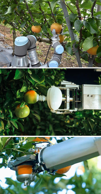 Raccolta robotizzata nell’agrumeto. La raccolta robotizzata degli agrumi si fonda su sistemi analoghi a quelli impiegati nei meleti, logicamente adattati alle specificità della coltura. La maggiore irregolarità delle chiome, la presenza di rami spinosi e la distribuzione disomogenea dei frutti rendono necessari bracci con ampia escursione e sistemi di presa dotati di sensori di pressione, capaci di limitare i danni durante il distacco. La movimentazione post-raccolta avviene mediante tubi o contenitori ammortizzati, opportunamente dimensionati per le caratteristiche degli agrumi.