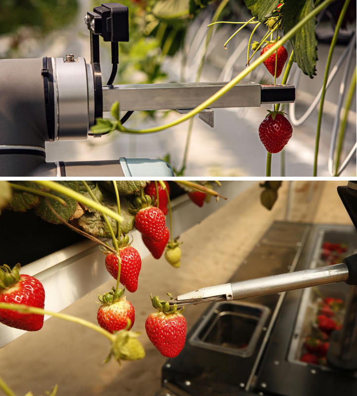 Raccolta robotizzata dei piccoli frutti. Nonostante le fragole presentino una delicatezza e un sistema di allevamento non comparabile con altre colture di frutti di largo consumo, le tipologie di robot impiegate per la raccolta mostrano diverse similitudini tecnologiche, in particolare nell’uso della visione artificiale e nei principi di presa adattiva. La sfida principale non riguarda soltanto la velocità di esecuzione, ma anche la capacità di operare su frutti di piccole dimensioni, poco visibili tra la vegetazione e particolarmente delicati. In questo contesto, la progettazione dell’impianto diventa determinante: file regolari, coltivazione su rialzo o in tunnel e sistemi di allevamento che favoriscono chiome ordinate e ben esposte migliorano sensibilmente visibilità e accessibilità. L’automazione consente raccolte più frequenti e selettive, riducendo la dipendenza dalla manodopera e garantendo maggiore uniformità qualitativa, ma restano i limiti inerenti i costi di investimento e una velocità ancora inferiore rispetto agli operatori manuali.
